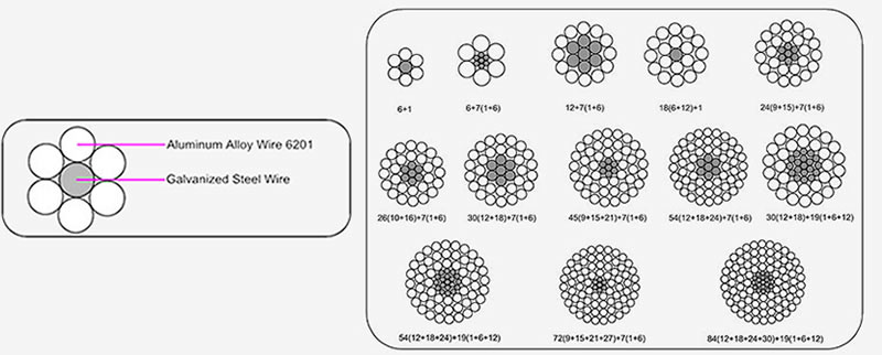 The AACSR conductor is formed by several wires of aluminum alloy and galvanized steel, stranded in concentric layers. The wire or wires which form the core, are made of galvanized steel, and the external layer or layers, are made of aluminum alloy.