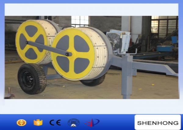 Features: Recover machine is used to recover the guide rope and double pulley rollers after OPGW stringing operations. The damper spring system can keep the guide rope tighten during recover operation, and prevent it to touch the hot line. Especially it can be help to prevent collision placed on guide rope. This tool is connected to the end of guide rope that is placed on the new OPGW, and being recovered with serving brake when the guide rope draw back by winch.