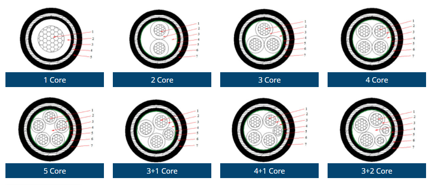 0.6/1 kV NA2XBY Cable (AL/XLPE/STA/PVC) manufactured by GE meets or exceeds the requirements of all international standards like ASTM, AS, BS, CSA, DIN, IEC, NFC, SS -etc
